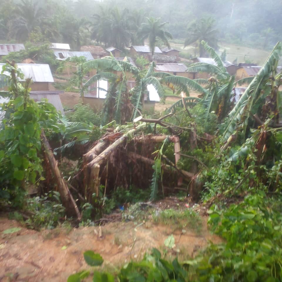 La pluie violente, accompagnée de grêle, a emporté en son passage des toitures de maisons, d’écoles, d’églises et de structures sanitaires locales. Plusieurs familles ont passé la nuit à la belle étoile, privées d’abris et de biens essentiels. Des champs de cultures vivrières, des bananeraies, des étangs piscicoles ainsi que des objets scolaires ont été détruits, aggravant la menace sur la sécurité alimentaire et les conditions de vie, particulièrement pour les enfants, les femmes enceintes, les personnes âgées et les personnes vivant avec handicap.